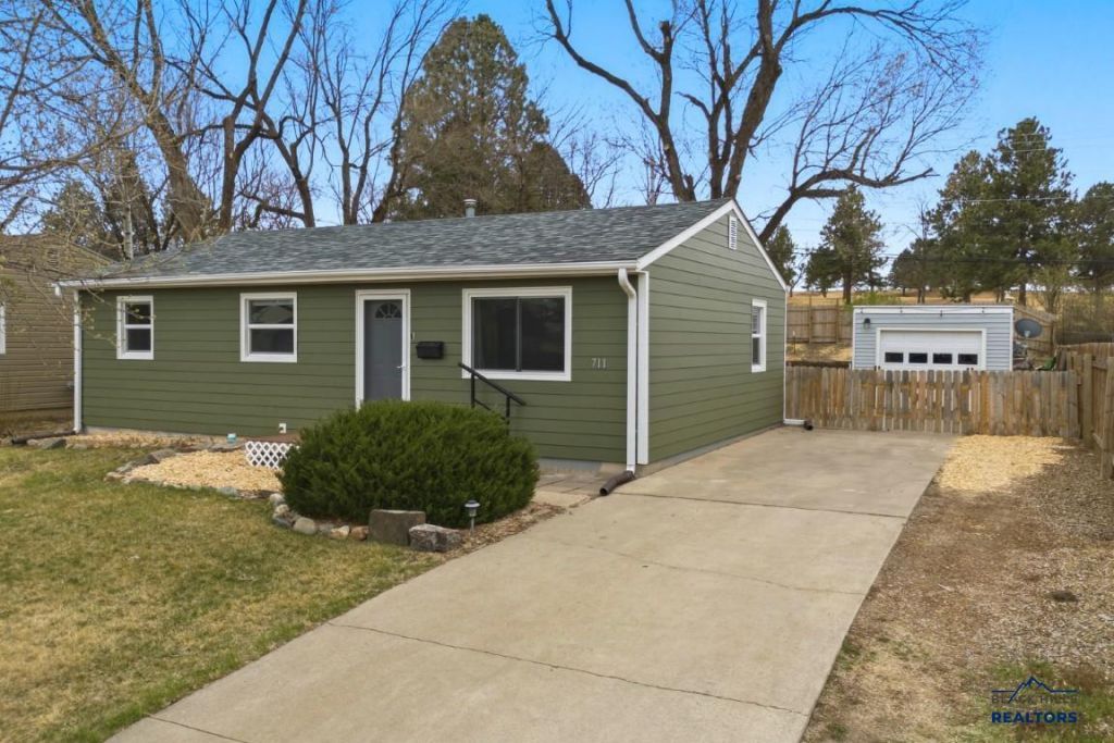 Welcome to 711 East Oakland Street, Rapid City, SD. Clean, stylish, and move in ready, this updated 3 bedroom, 1 bathroom ranch offers comfortable living with smart improvements throughout. With 912 square feet, the home feels bright, functional, and easy to maintain, ideal for first time buyers, downsizers, or anyone seeking simplicity without sacrificing quality. Major upgrades provide peace of mind, including a new furnace and central air system in 2021, upgraded 200 amp underground electrical service to the home, and a separate 100 amp underground service to the oversized 1 car garage with its own breaker panel, perfect for projects or storage. The electrical panel includes GFCI breakers, the crawl space is insulated with a water barrier, and the water heater was replaced in 2025. Exterior updates include Hardie Board siding installed in 2024 and buried Midco and Blue Peak internet lines. Inside, the home is fresh and inviting with a modern feel. Outside, enjoy a large fully fenced backyard with mature trees, established flower beds, and direct access to Robbinsdale Park, making the park feel like part of your backyard. Located near Robbinsdale Elementary, South Middle School, and with easy access to medical facilities, this home offers comfort, convenience, and value. OPEN HOUSE SUNDAY APRIL 12, 2:00 to 3:30 PM.